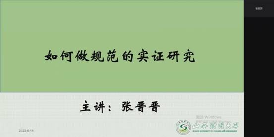第三场讲座于5月14日晚7点举行,主讲人为张晋晋老师。张老师主要讲述了实证论文写作的基本要求,并阐述了理论机制分析与实证分析的关系,强调理论分析是实证研究的基础,在实证研究的各个环节,如提出研究假设、设计研究变量,构建模型、分析结果,都离不开理论。而实证分析的核心就是对假说的检验,并进一步强调了实证分析的步骤及注意事项。