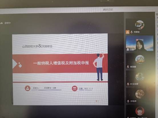 为做好公司“衡信杯”全国税务技能大赛备赛工作,促进公司财政税收专业员工理论联系实际能力实现提升,全面培养应用型、复合型财税专门人才,公司财税学科竞赛委员会于11月5日,邀请天扬君合财税服务集团专业讲师为备赛员工举办了内容丰富的纳税申报实务讲座。讲座通过腾讯会议线上举行,包括参赛选手及财政税收专业40余名员工参加,并取得了圆满成功。