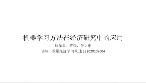 许庆迪同学《机器学习方法在经济研究中的应用》一文,对近年来机器学习方法在经济研究中的应用进行回顾,从通货膨胀、汇率与货币、GDP、劳动力市场、社会稳定、政策评价等角度进行总结,比较了常用机器学习方法的优缺点,并展示了模型的评价准则。研究表明,在处理非平稳和非线性时间序列时,机器学习模型的表现优于传统统计模型,无监督学习方法也有助于从无序数据中找出集群和规律,为经济指标构建、政策信息分析等提供了新思路。
